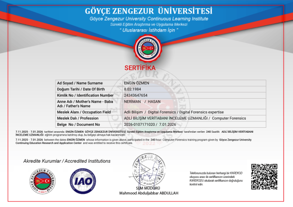 Adli Bilişim Veritabanı İnceleme Uzmanlığı